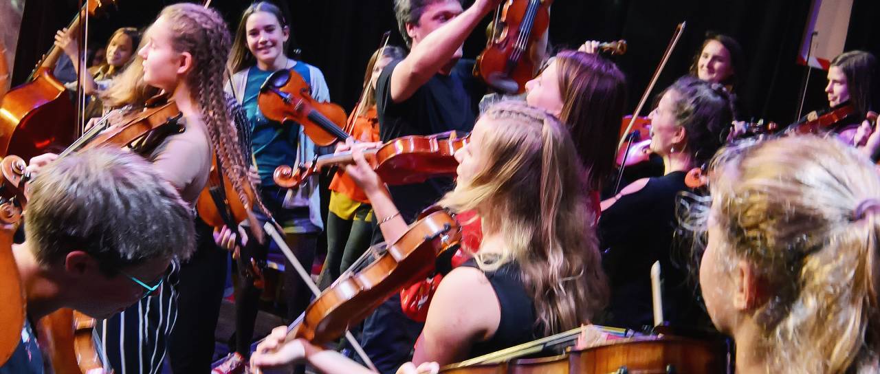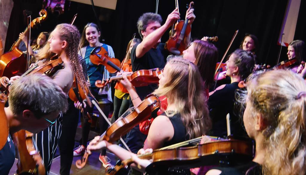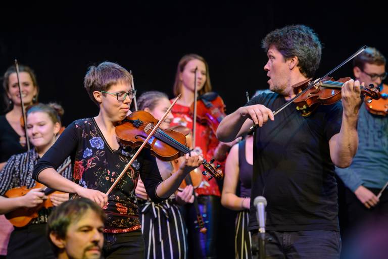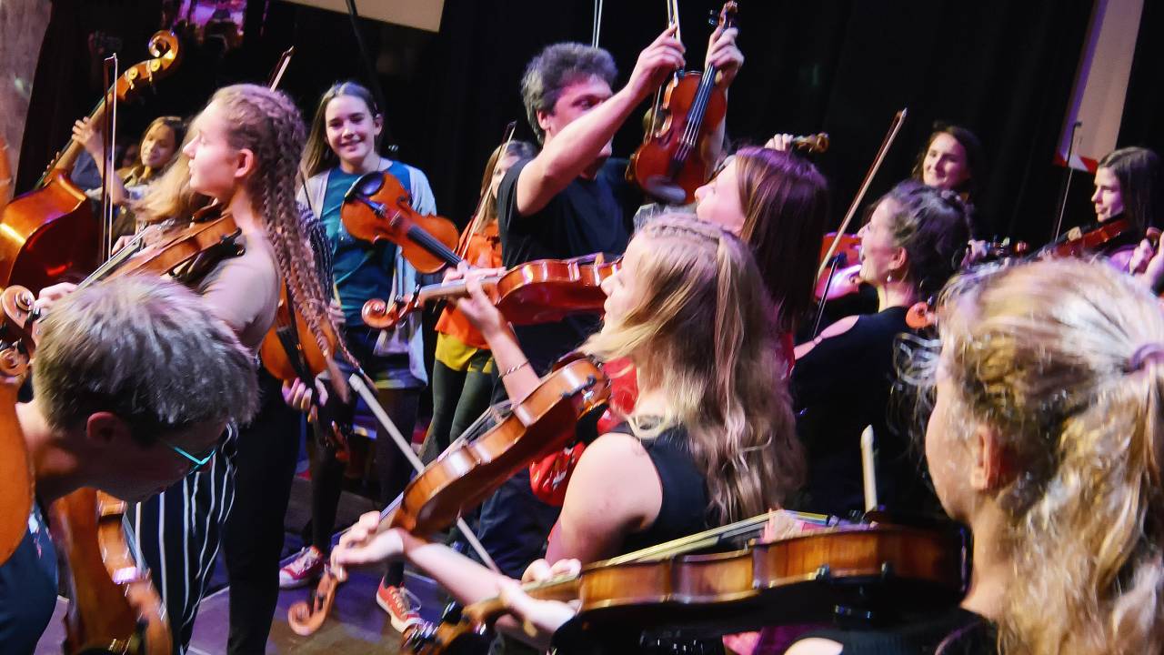 Koncertne produkcije Godalkanja pa ne minejo brez virtuozne in strunorezne produkcije orkestra z najstniškimi solistkami Godalkanje Fiddle Gang-a.
