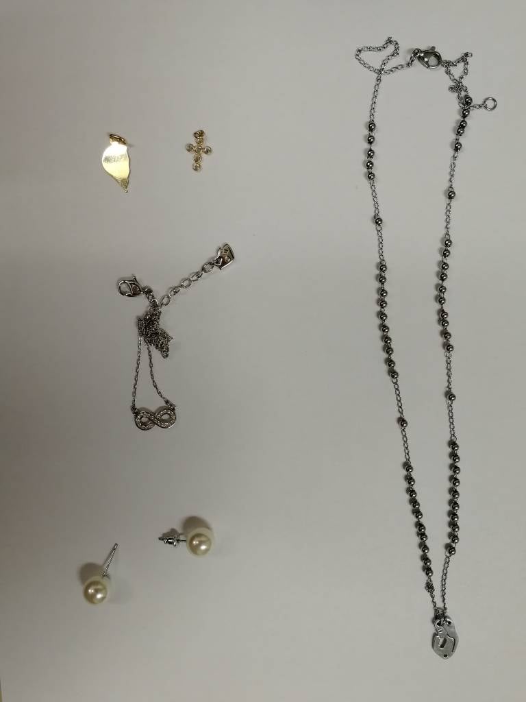 Na podlagi odredbe sodišča so pri obeh opravili osebno preiskavo in pri njiju našli in jima zasegli dva obeska, par uhanov s perlami, dve verižici iz kovine srebrne barve, sončna očala, drobižnico, mošnjiček ter nekaj denarja v različnih valutah.