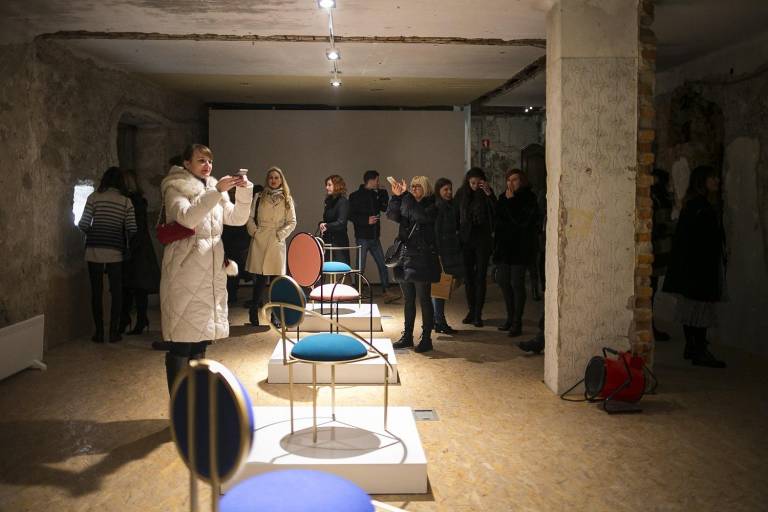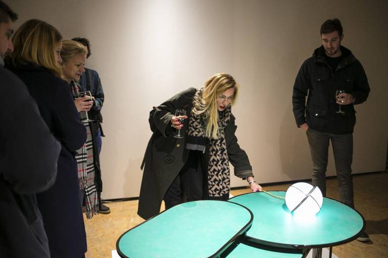 Po predavanju so si obiskovalci ogledali razstavo stolov in miz, oblikovanih v Studiu Bohinc, po navdihu elementov iz vesolja, na primer Orbit in Solar.