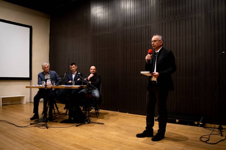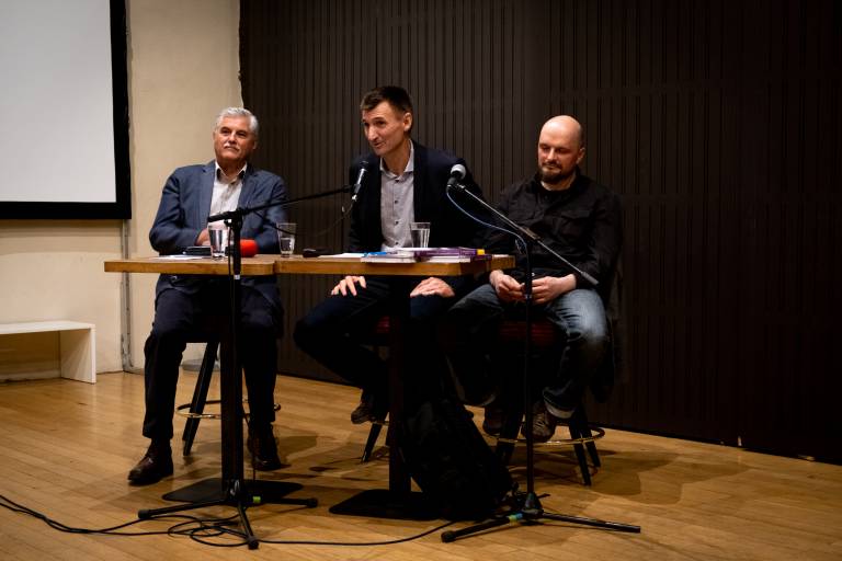 Pod vestnim povezovanjem programa dogodka z Andrejem Brvarjem, Miran Lavrič in Andrej Naterer podata kratek in površinski, a kljub temu izčrpen oris tega, kar novorojena knjiga ponuja. S tem vržeta vpogled v nekatera bistvena vprašanja in dileme, s katerimi s sooča Maribor in nakažeta, v kakšne teme se njuna znanstvena monografija pravzaprav spušča.