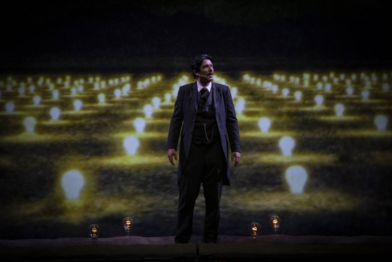 »Opera, posvečena briljantnemu Nikoli Tesli, ne prinaša le zgodbe o njegovih izumih, ampak tudi o njegovem neizmernem hrepenenju po napredku in premikanju mej mogočega. Tesla, ki je svetu prinesel radio, izmenični tok in številne druge izume, bo na odru zaživel skozi glasbo, čustva in vizualne čarovnije, ki bodo občinstvo popeljale v srce njegovega genija.
