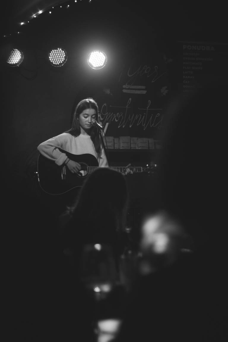 Mlada glasbenica igra kitaro štiri leta, pred tem pa je šest let igrala violino. »Smilila se mi je mamina kitara, ki je več let zaprašena stala v kotu dnevne sobe, pa še želela sem si, da bi se lahko sama spremljala na inštrument ob petju, zato sem enkrat pač poskusila in nadaljevala. Verjetno mi je pri učenju kitare zelo pomagalo, da sem prej šest let igrala violino. Igram torej ta dva inštrumenta, poskušam pa še ukulele, banjo in klavir, ampak mi je kitara za zdaj najljubša,« nam zaupa.