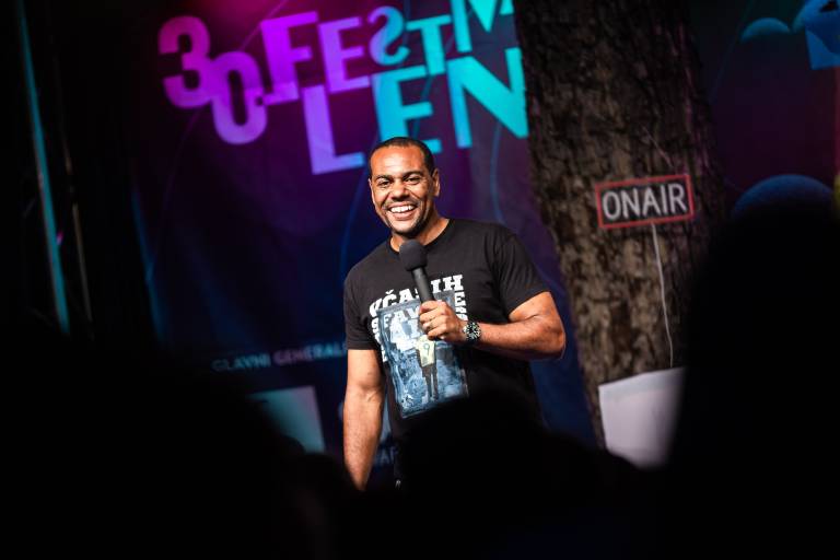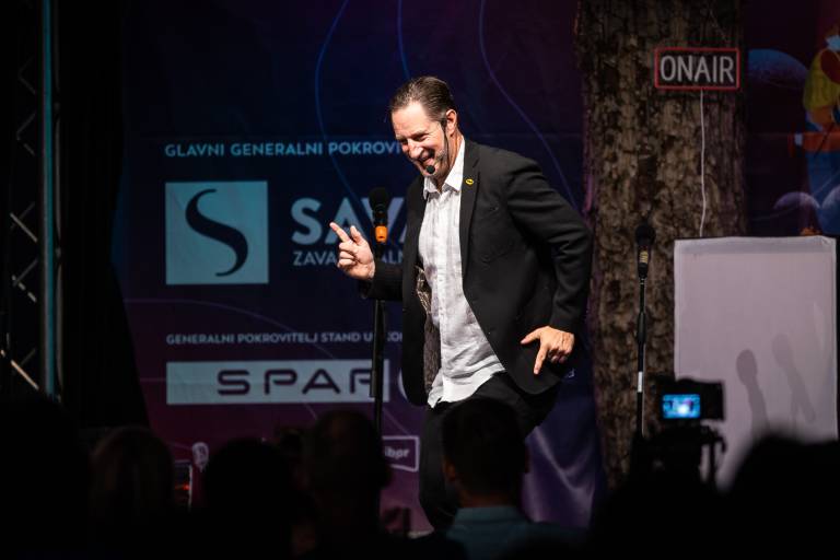 Za dobro uro in pol smeha so poskrbeli žametni glas Radia City Bor Greiner, prva šunka Pohorja Filip Flisar, bankster John Denhof, legenda Marcos Tavares in najboljši raper med keramičarji 6pack Čukur.