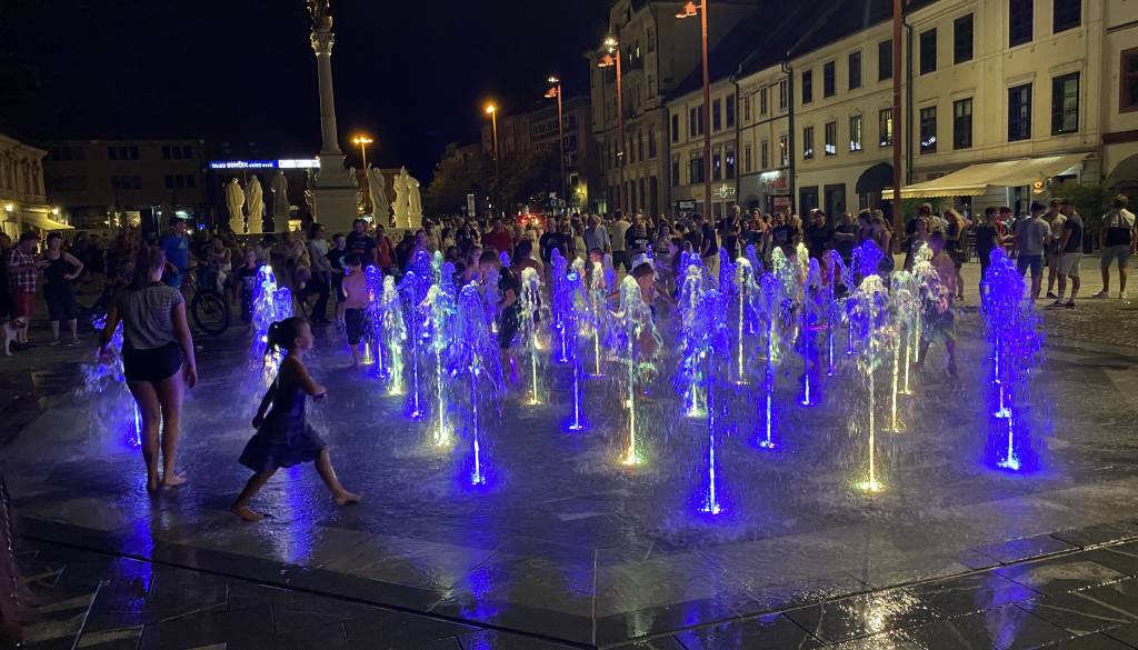 Na sveže prenovljenem Glavnem trgu je včeraj uradno zasijala orjaška ulična razsvetljava, z delovanjem je pričela tudi barvna fontana, ki jo je Maribor že sprejel za svojo.
