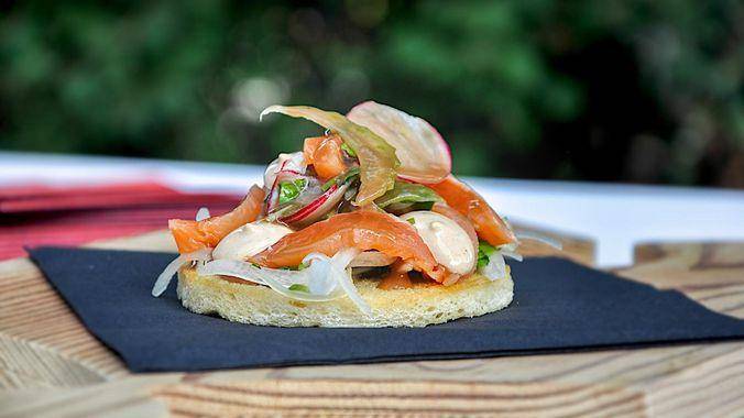 - Mangalica in solata (mangalica, topla zelenjava in limonova tapioka)