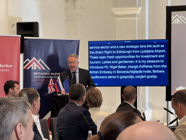 Odpravnik poslov na britanskem veleposlaništvu v Ljubljani Nigel Baker je dejal, da je zelo primerno, da razprava o gospodarski prihodnosti poteka prav v Mariboru.