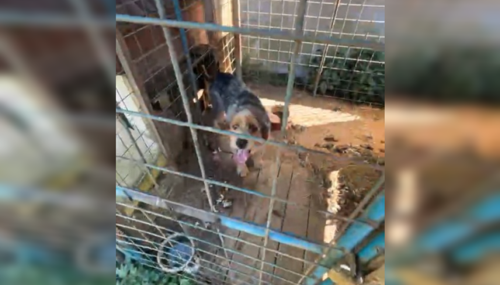 Na fotografijah, ki so jih objavili na družbenem omrežju X, je videti psa, zaprtega v majhnem kovinskem boksu, obdanega s starimi iztrebki. Hrana je videti gnila, voda pa že stara.