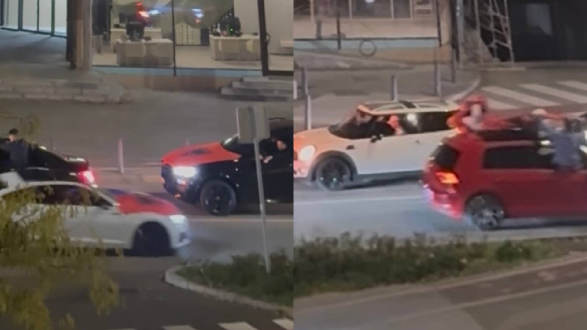 Fotografije, ki so jih posneli prebivalci, prikazujejo več vozil z albanskimi in kosovskimi zastavami, udeleženci pa naj bi skozi okna vozil mahali in vzklikali navijaške parole.