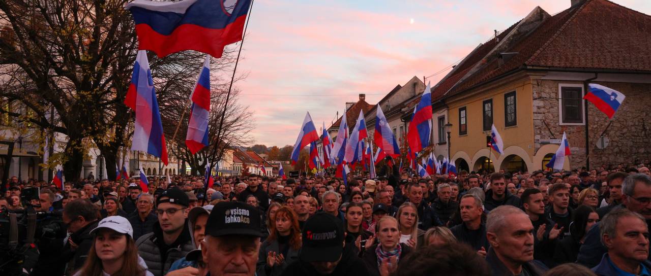 18.25 Glavni trg v Novem mestu je nabito poln, po nekaterih ocenah naj bi se zbralo okoli 10.000 ljudi, navaja STA.
