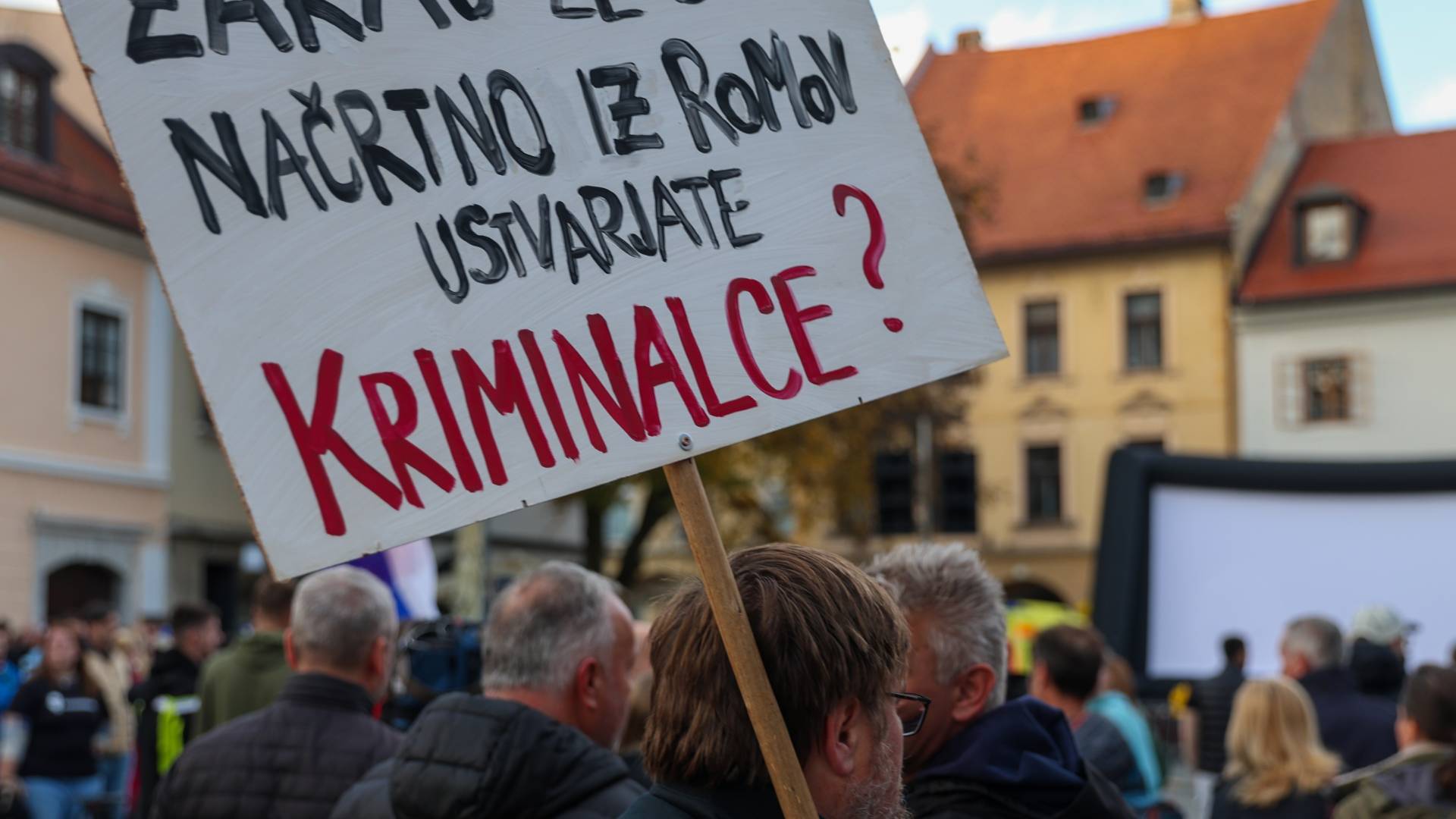 17.30 Množica na trgu spremlja izredno sejo in žvižga ob omembi nasilništva Romov, nekaznovanju nepridipravov, vse bolj pereči romski problematiki.