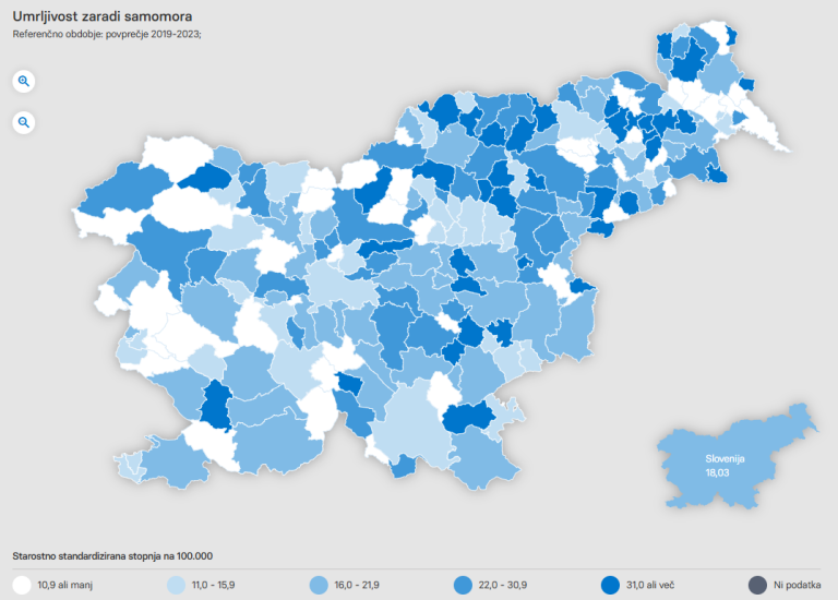 Zaznali so tudi nižjo stopnjo umrljivosti zaradi samomora kot v preostalem delu države – v Mariboru je znašala 16 na 100.000 prebivalcev, v Sloveniji pa 18.