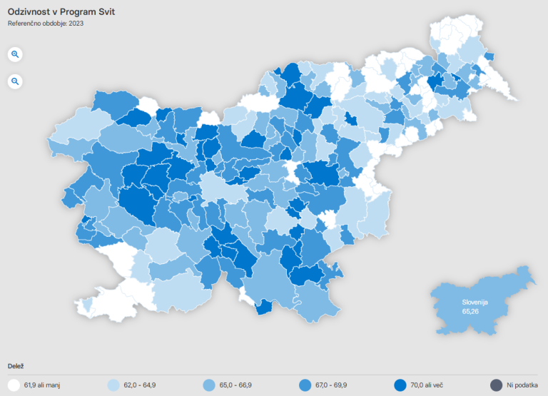 Podobno velja za program Zora za odkrivanje raka materničnega vratu, kjer je bila odzivnost 70,3 odstotka, slovensko povprečje pa je doseglo 74,5.