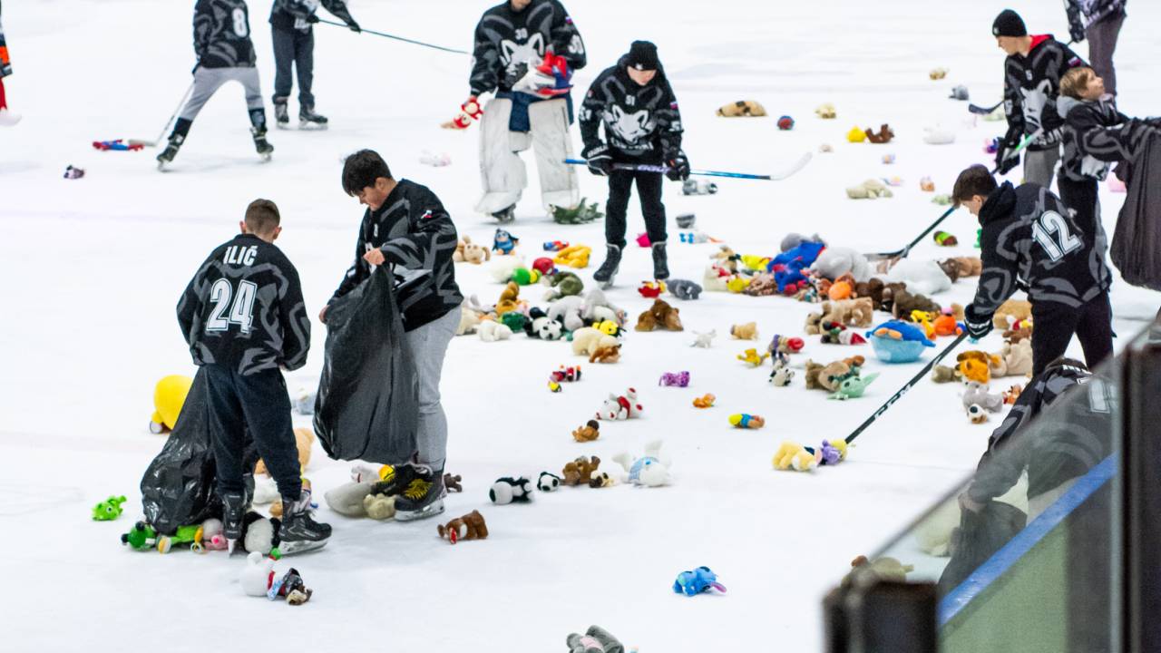 Ob zadnjem pisku sirene je dvorana namesto razočaranja nad porazom doživela čustven izbruh. Na ledeno ploskev je poletelo na stotine plišastih igrač, ki so v trenutku prekrile celotno igrišče.