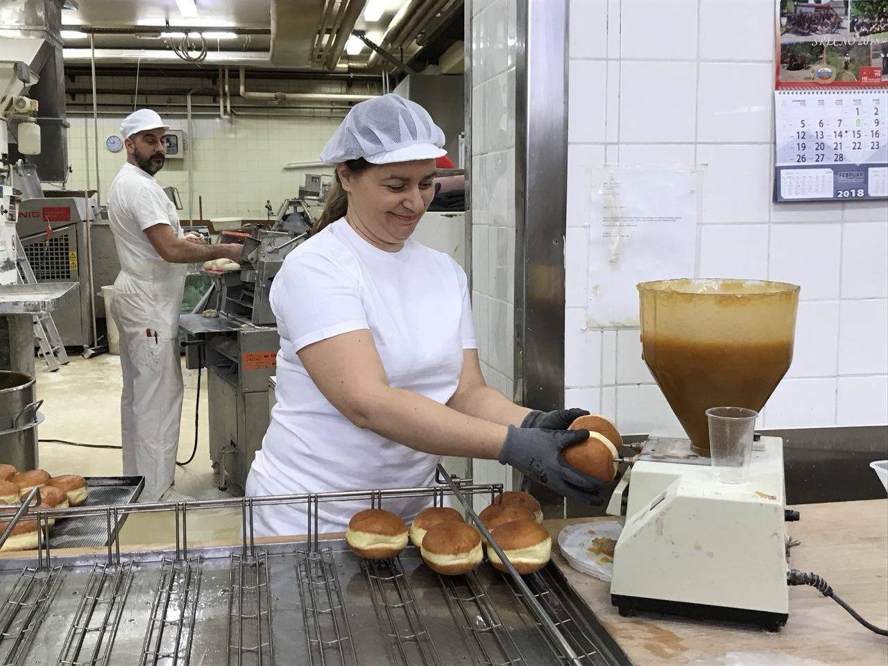 V pustnem času pripravijo kar 350.000 krofov, tudi do 60.000 na dan. A ker stroji vsega ne zmorejo sami, je v pekarni potrebna še dodatna pomoč pridnih rok. Sogovorka je pojasnila, da se krof 4 -krat preobrne in je v olju 7 minut. Nato gre za odcejanje, nato pa na polnjenje z marmelado.