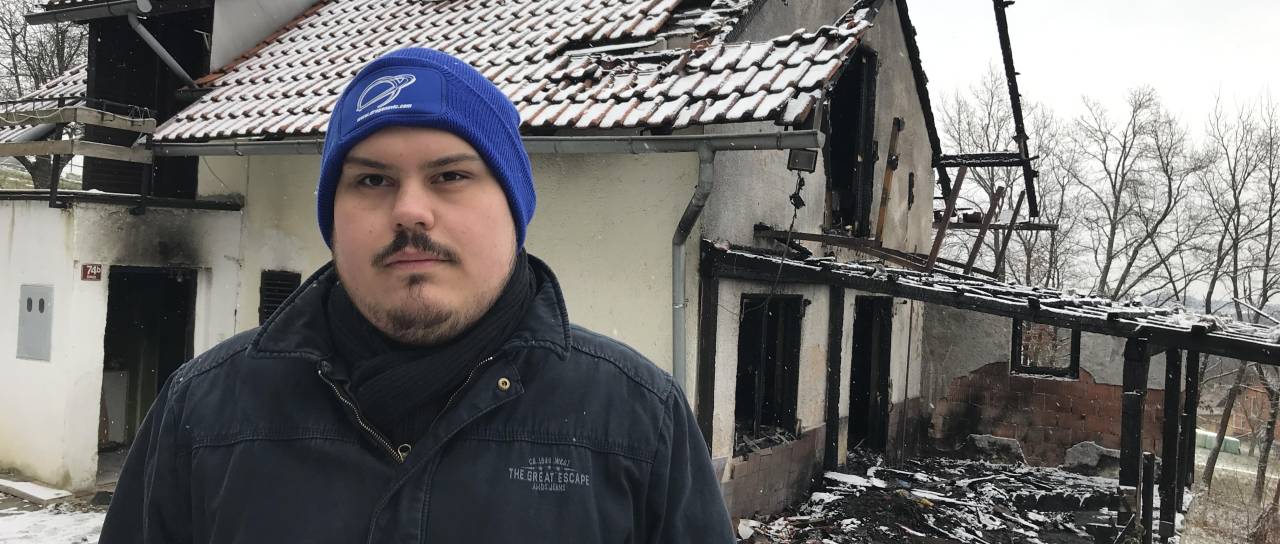 Sobotno jutro bi skoraj bilo usodno za 22-letnega Žana Kotnika. V Galiciji pri Žalcu je namreč popolnoma zgorela hiša, v kateri je živel sam. Nekaj minut pred peto uro zjutraj je spal na postelji v prvem nadstropju, ko ga je prebudilo glasno pokanje okenskih stekel.
