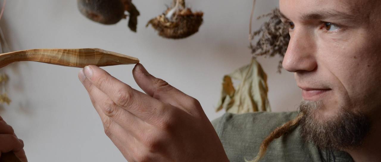 Spoznajte umetnika, ki pri ustvarjanju "kraljevskih" lesenih žlic uporablja samo ročno orodje - žago, sekiro, mačeto in rezbarske nože.