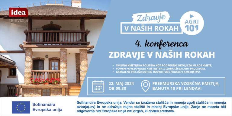 4. konferenca Zdravje v naših rokah bo v sredo, 22. maja 2024, ob 9.30, na prekmurski vzorčni kmetiji v Banuti v bližini Lendave.
