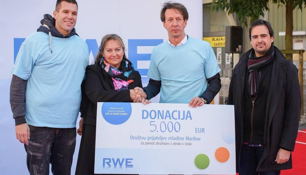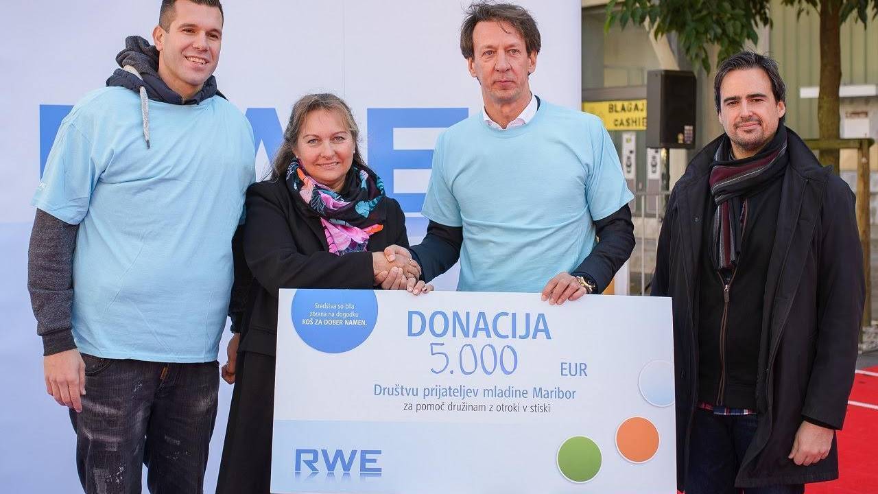 Poročali smo, da je v petek in soboto v središču Maribora, na Trgu Leona Štuklja, potekal dobrodelni dogodek - Koš za dober namen. Podjetje RWE je v okviru dogodka, ki ga je organiziralo skupaj s partnerji, Društvu prijateljev mladine Maribor doniralo 5000 evrov za družine z otroki v stiski.