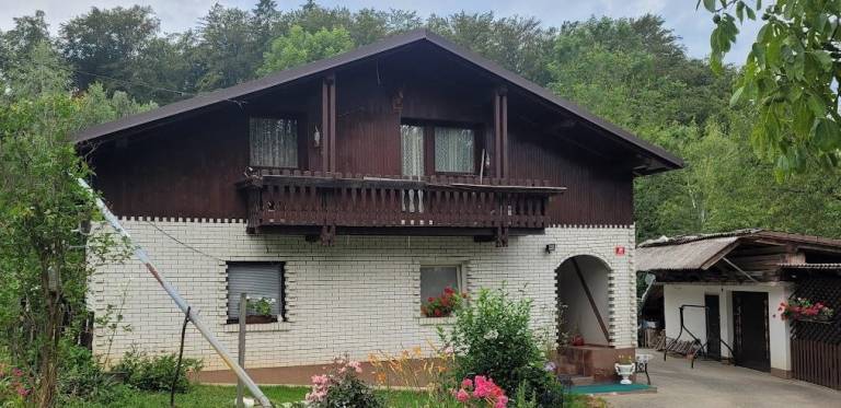 Hiša je bila zgrajena leta 1966, streha na novo prekrita leta 2006. Zunanjost stavbe je obdelana s fasadno opeko in lesom.