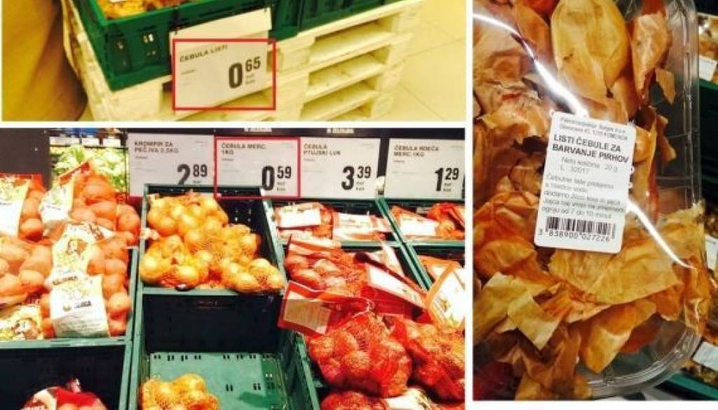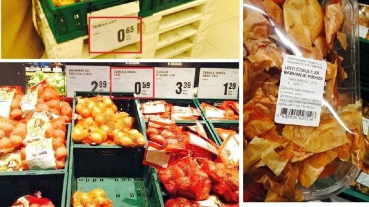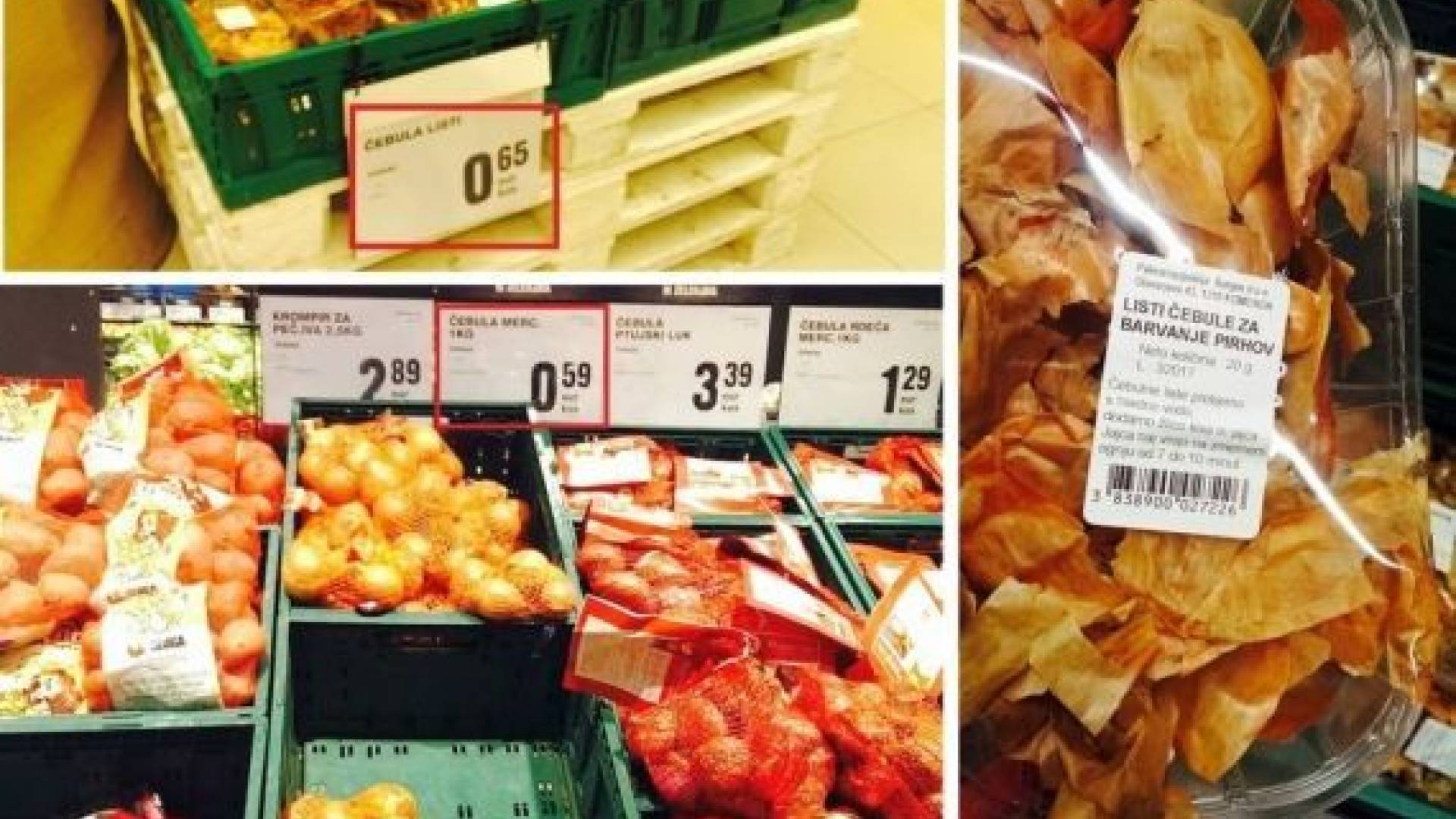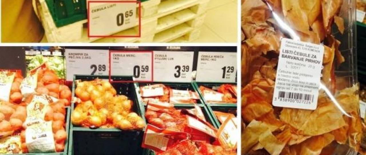 Na Zvezi potrošnikov Slovenije so v eni izmed trgovin opazili, da prodajajo 20 gramov čebulnih olupkov po 65 centov, kilogram čebule pa po 59 centov.