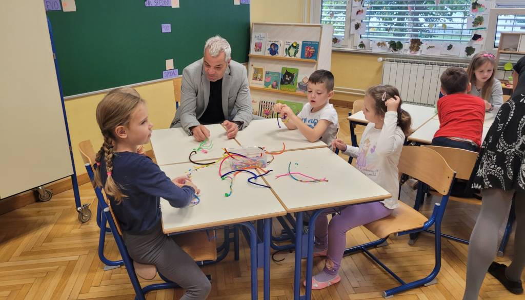 Župan se je v enem izmed razredov družil z otroki, ki so mu med igro in delom v manjših skupinah imeli priložnost postaviti raznovrstna vprašanja.