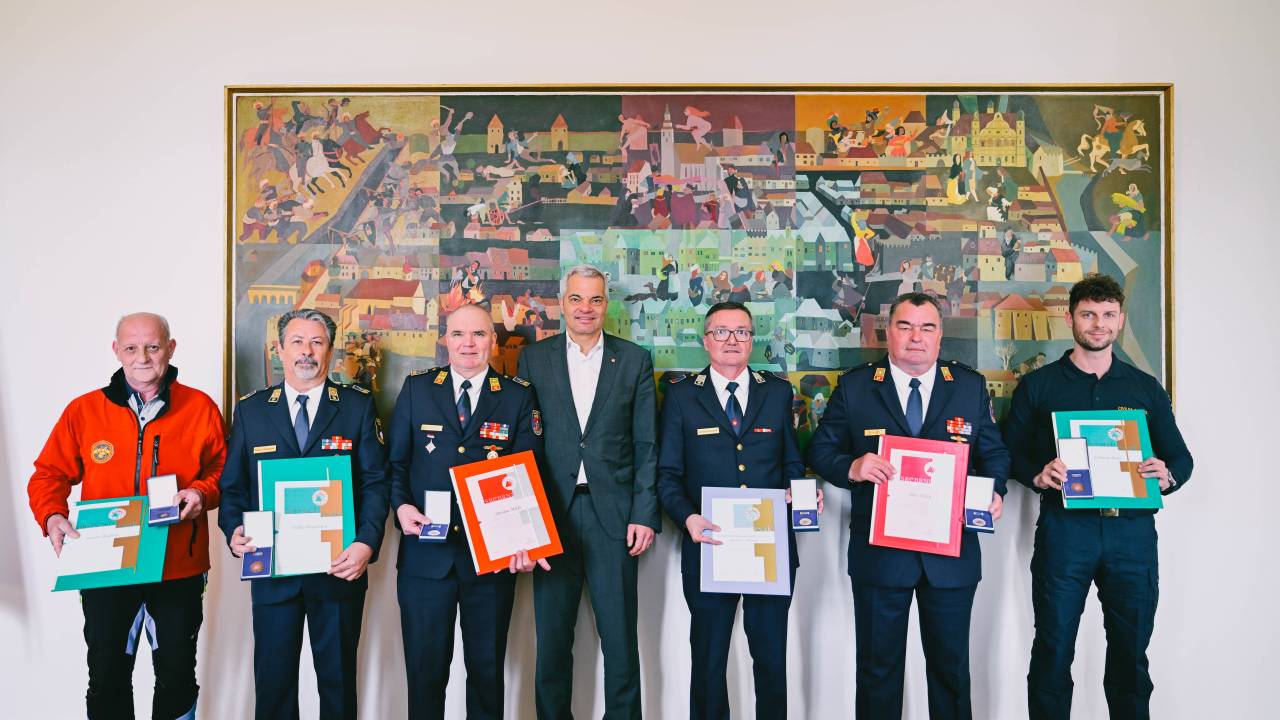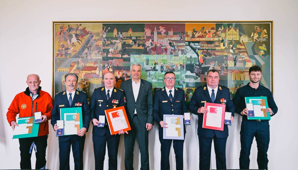 Mariborski župan sprejel prejemnike priznanj civilne zaščite.