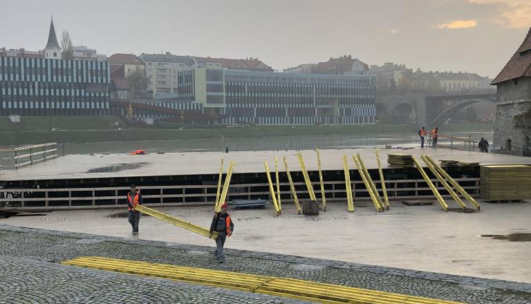 FOTO in VIDEO: Plavajoči oder na Dravi se seli v skladišče