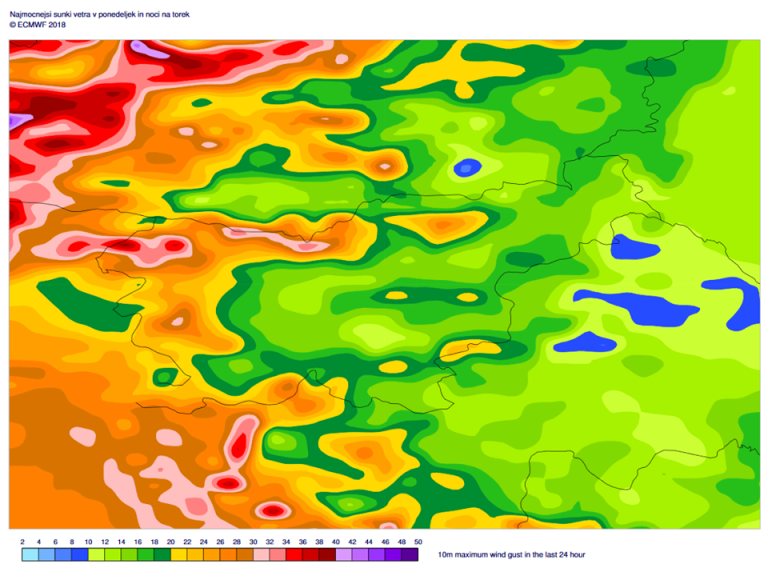 Od sobote do torka zjutraj bo precej vetrovno. V višjih legah in tudi ponekod po nižinah bo pihal okrepljen veter južnih smeri, ki bo predvidoma najmočnejši v ponedeljek in v noči na torek. Ni izključen tudi pojav vetroloma.