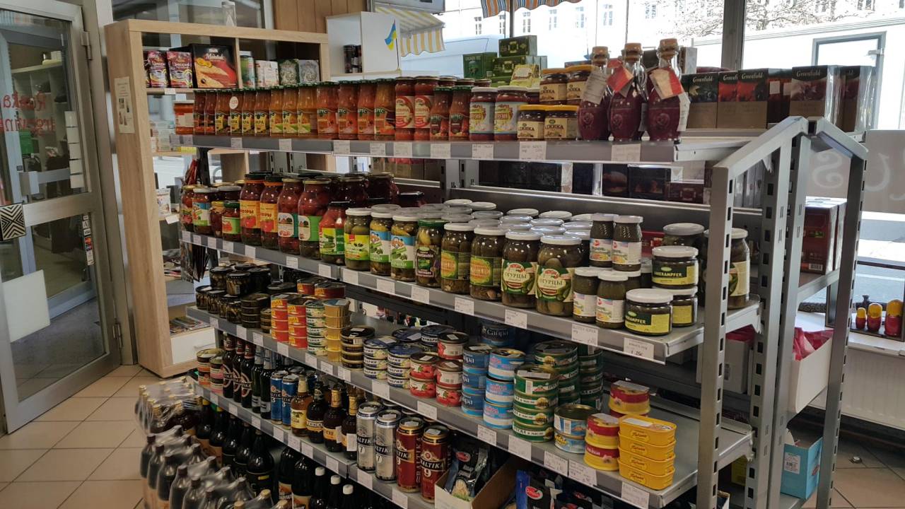 Ruska trgovina, ki se nahaja na Trgu revolucije, ponuja prav vse za okusno rusko večerjo – raviole s kaviarjem, ruske sire, konzerve rib in zelenjave, gosje paštete, vložen paradižnik na vsaj pet načinov, dve steni raznovrstnih sladkarij, recepte in sestavine za medeno marlenko, majice z ruskimi motivi, otroške kreme … Za osvežitev kar dve polici piv, še več ukrajinskih in ruskih vodk, gruzijsko vino in moldavski konjak, medtem ko turisti pridejo seveda najraje po klasične babuške.