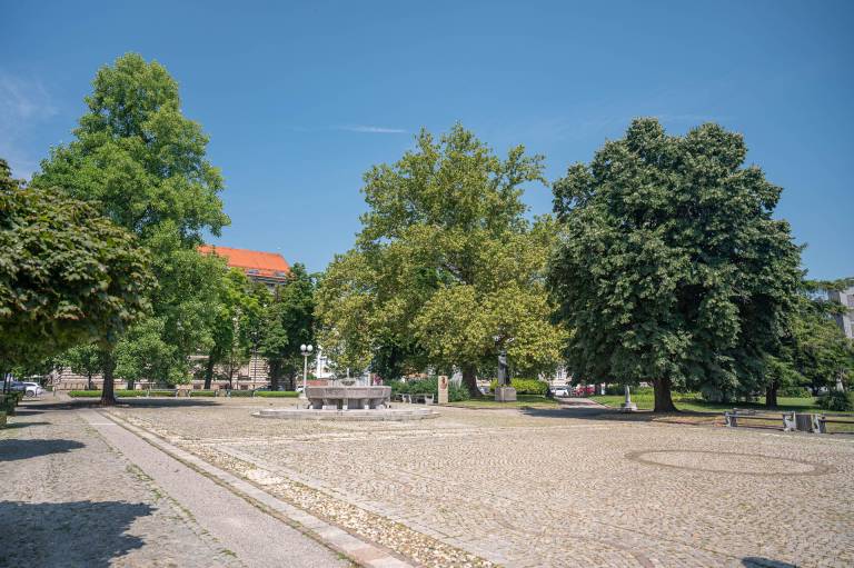 Mariborski otok, Mestni park, fontana na Glavnem trgu ali domača klima