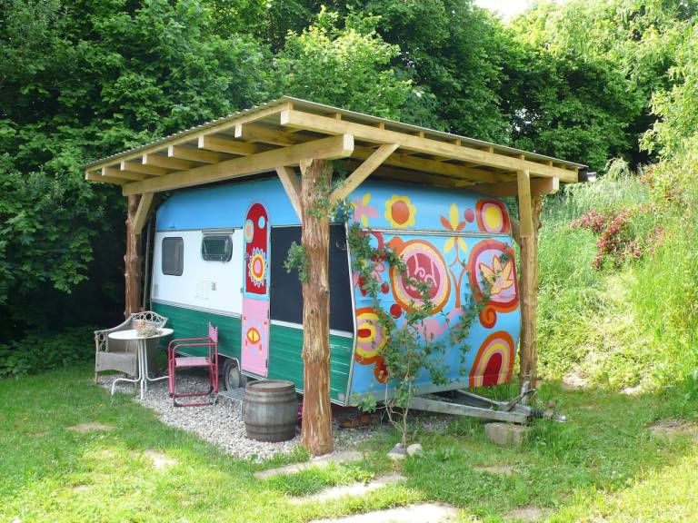 V Ceršaku Dominik in Klavdija ponujata svojevrstno izkušnjo le za 20 evrov na noč. Dve osebi lahko namreč prespita v prikolici, ki je postavljena poleg gozda.