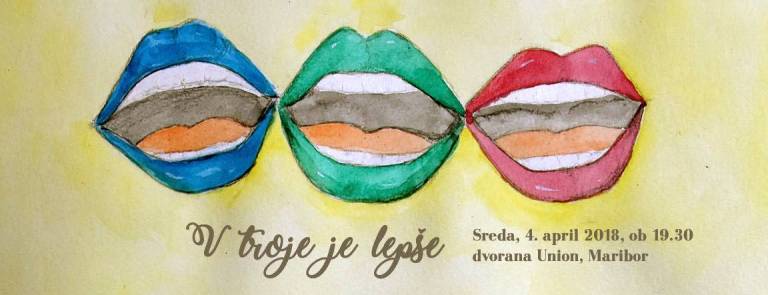 V sredo, 4. aprila, si boste lahko v Unionski dvorani ogledali koncert V troje je lepše, na katerem bodo nastopili Akademski pevski zbor iz Maribora, Ljubljane in iz Primorske.