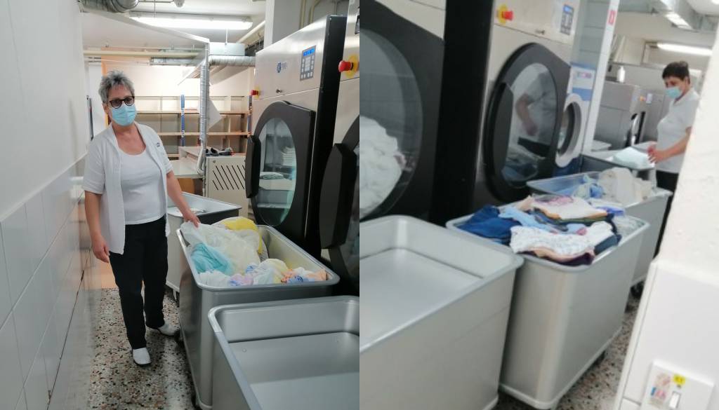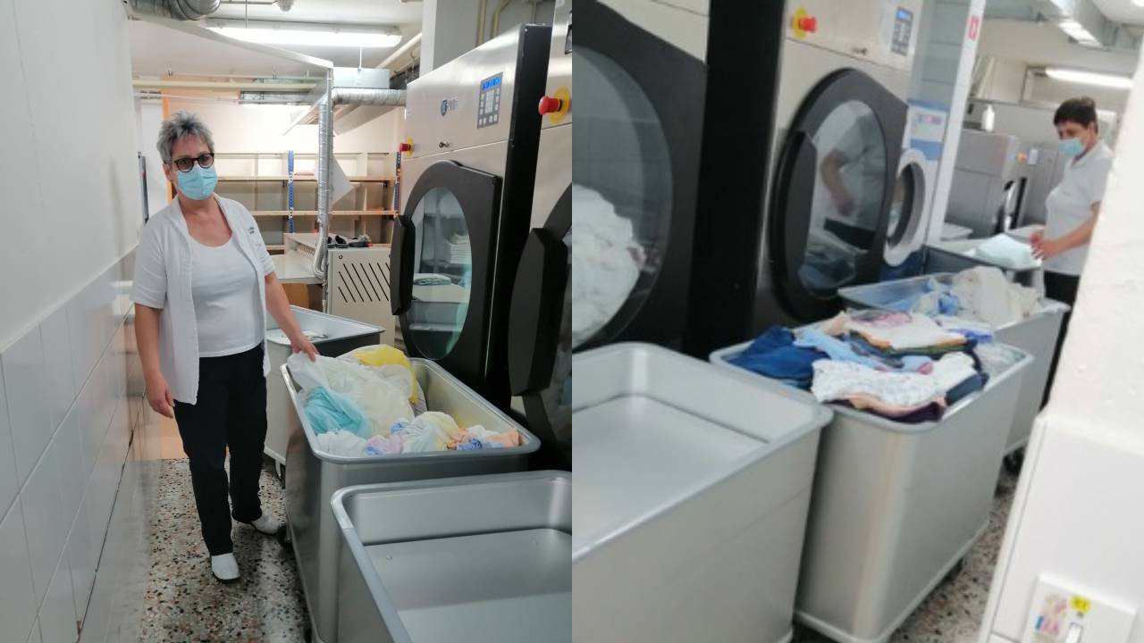 Med zaslužnimi so tudi perice, ki vsak dan požrtvovalno skrbijo za čista oblačila. Olga Zver, vodja oddelka za pranje v Domu starejših Lendava, ki delo v pralnici opravlja že 26 let, se skupaj z neutrudnimi sodelavkami v času epidemije iz dneva v dan sooča s pranjem gromozanskega kupa perila tudi covid pozitivnih stanovalcev doma.