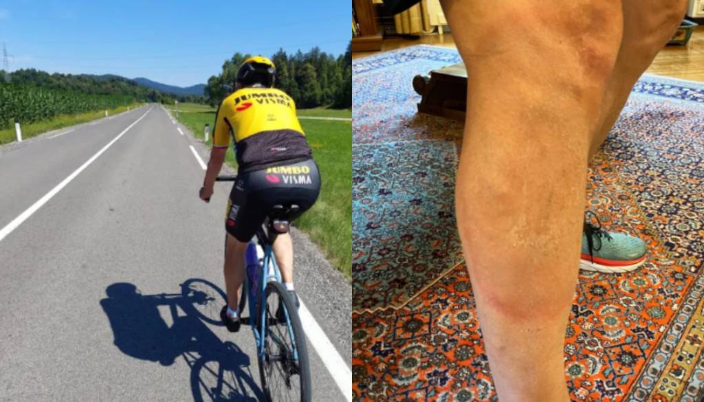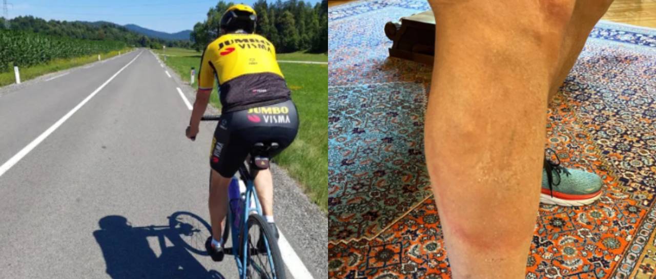 »Med kolesarjenjem po Istri je Aleš opazil 'flek' na moji desni nogi in me vprašal, ali ni to morda posledica pika klopa in sum na borelijo. Ker je toliko težil, sem mu pokazal 'fotko' iz 12. julija, ko sem v fitnesu to sam prvič opazil.