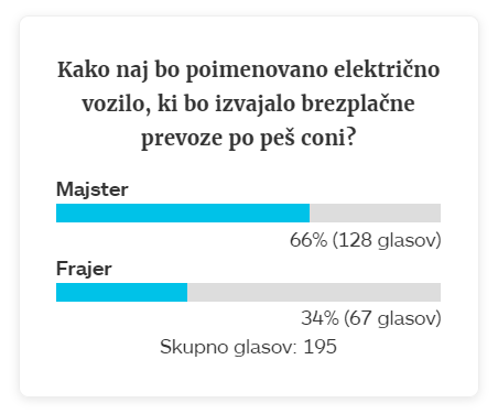 V nedavni anketi smo povprašali bralce Mariborinfo, katero ime - Majster ali Frajer - bi bolj pristajalo mariborskemu mini električnemu vozilu.