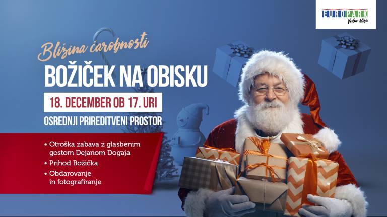 V mariborskem Europarku bo praznična čarovnija dosegla vrhunec v sredo, 18. decembra, ob 17. uri, ko bo nakupovalno destinacijo obiskal težko pričakovani gost, dobri mož z belo brado in rdečo obleko – Božiček.