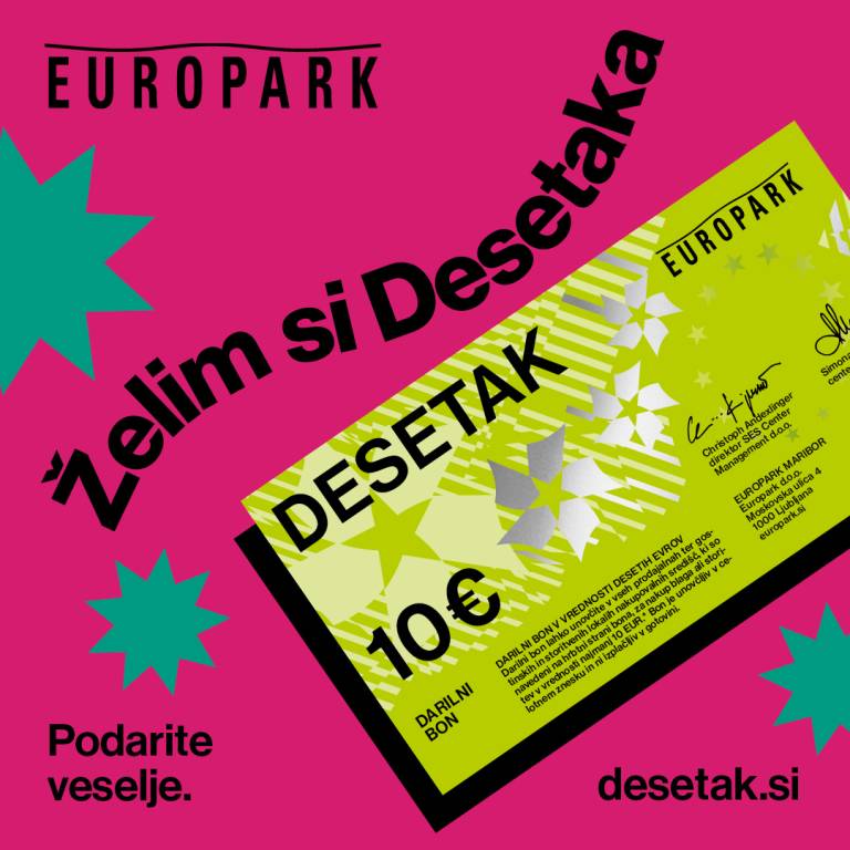 Z njimi lahko svojim najdražjim podarite svobodo izbire, saj Desetak omogoča nakup v več kot 450 trgovinah v petih največjih nakupovalnih destinacijah po Sloveniji, vključno z Europarkom.