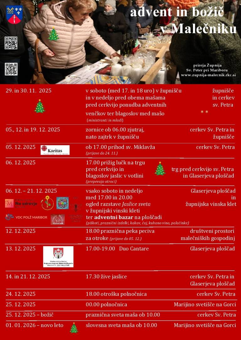 V sodelovanju s številnimi društvi in organizacijami ter posamezniki prireja župnija Malečnik različne aktivnosti in dogodke v adventnem in božičnem času.
