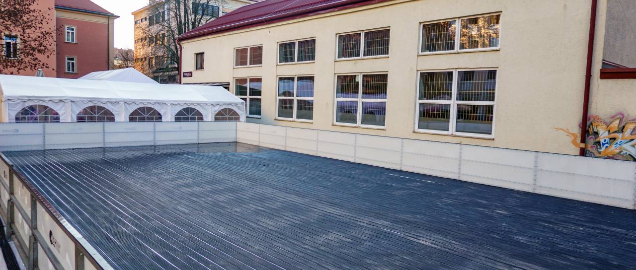 Ob kavarni Gallus pri mariborskem Mestnem parku so včeraj začeli s postavljanjem drsališča na prostem.