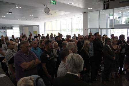 V avli Letališča Edvarda Rusjana Maribor se je zbrala množica podpornikov, med katero ni manjkalo znanih obrazov mariborske politične, kulturne in športne srenje.