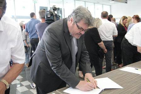 Direktorica in predsednik Štajerske gospodarske zbornice sta na mariborskem letališču javno pozvala k podpisu enotne podpore načrtovani investiciji Magne.