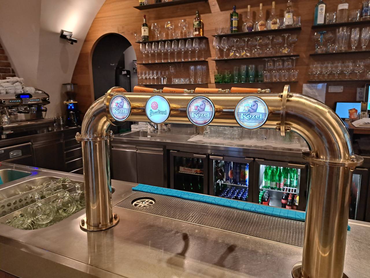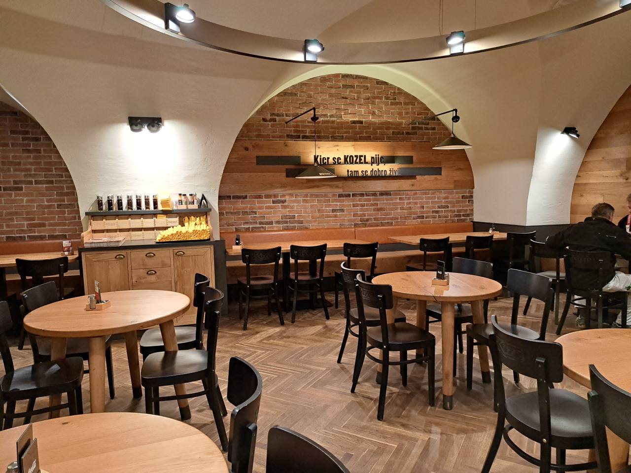 Gostje si lahko privoščijo svetli in temni Kozel in Pilsner Urquel, brezalkoholni kozel, pa tudi mešano in rezano pivo. »Pohvalimo se lahko z rezanim pivom,« razlaga: »To pomeni, da je svetlo in temno pivo s črto, tako kot se je včasih stregel miš-maš. Spodaj fanta, zgoraj rdečo vino.«