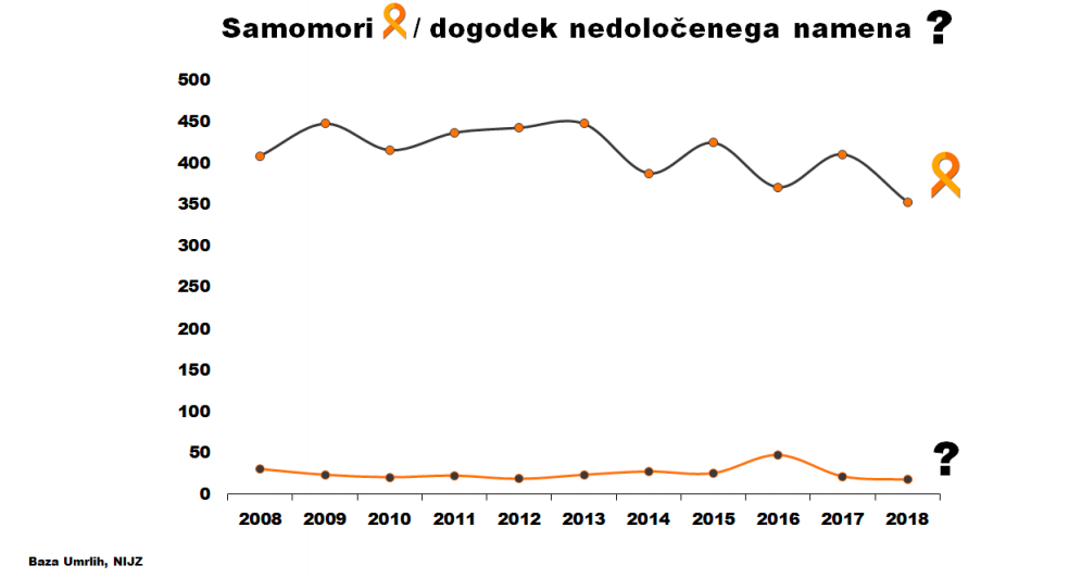 Po podatkih Nacionalnega inštituta za javno zdravje se trend upadanja samomorilnega količnika nadaljuje oziroma vzdržuje iz prejšnjih let, pri čemer število nepojasnjenih smrti - skupina smrti, kjer bi lahko bili prikriti oziroma neprepoznani samomori - ostaja bolj ali manj stabilno.