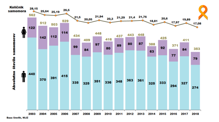 Čeprav se je stopnja umrljivosti zaradi samomora v zadnjih desetletjih v Sloveniji znižala za več kot 30 odstotkov, se po številu samomorov na 100.000 prebivalcev še vedno uvrščamo nad evropsko povprečje.