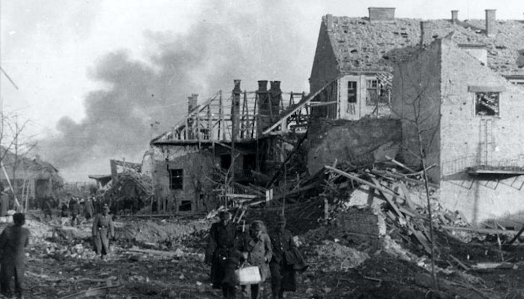 Na mesto je bilo odvrženih več kot 15.000 bomb, ki so terjale številne žrtve in porušile polovico mestnih hiš. Najhujši bombni napad je bil 14. oktobra 1944, ko je na mesto in okolico padlo kar 560 bomb, ki so ubile 76 ljudi.