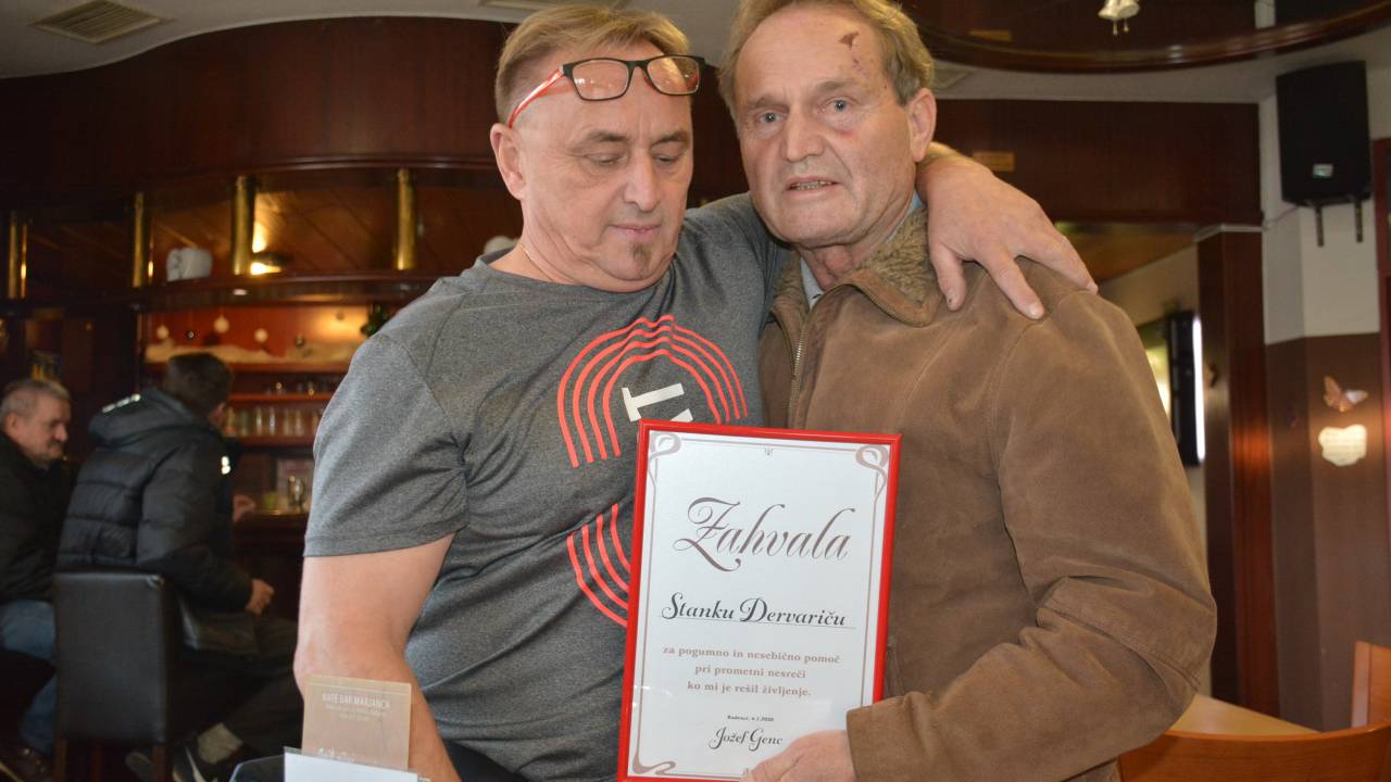 Jože Genc se za preživetje lahko zahvali le nesebični pomoči Stanka Dervariča z Radenskega Vrha, ki je nemudoma skočil v vodo in ga potegnil iz potapljajočega se vozila.