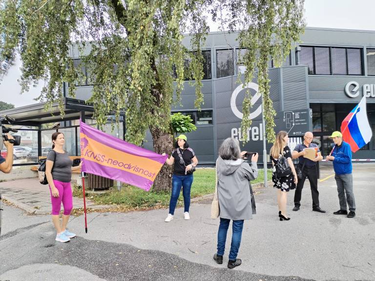 Danes se je nekaj zaposlenih skupaj s predstavnikom reprezentativnega sindikata zbrala na shodu pred podjetjem, kjer so opozorili na domnevno sporne poteze vodstva.