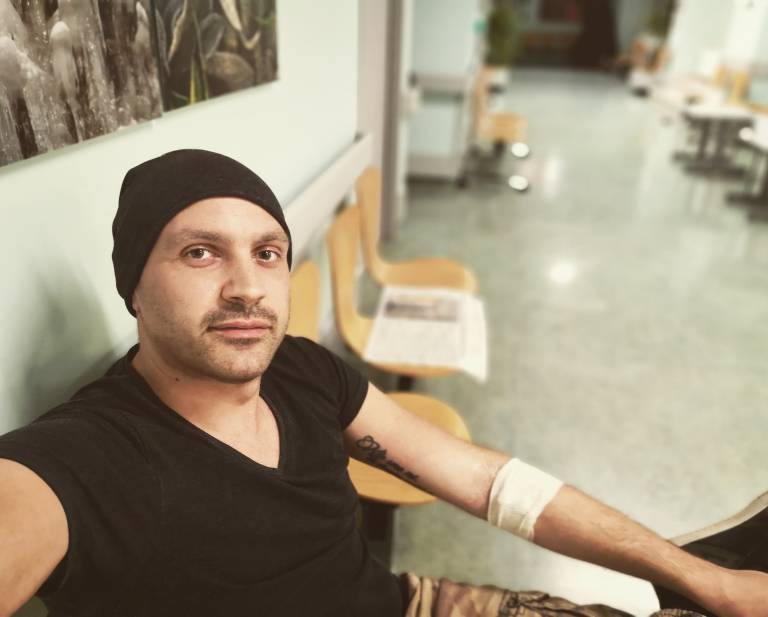 »Sprva se je pojavila bolečina, ki se je vsake toliko ponovila. Nato se je modo začelo povečevati. Na internetu sem brskal za morebitnimi diagnozami in zasledil, da bi lahko šlo za vnetje, spolno prenosljivo bolezen ali pa za raka. Upal sem, da je prvo ali drugo, nekaj dni kasneje se je izkazalo, da gre za tumor,« pripoveduje.
