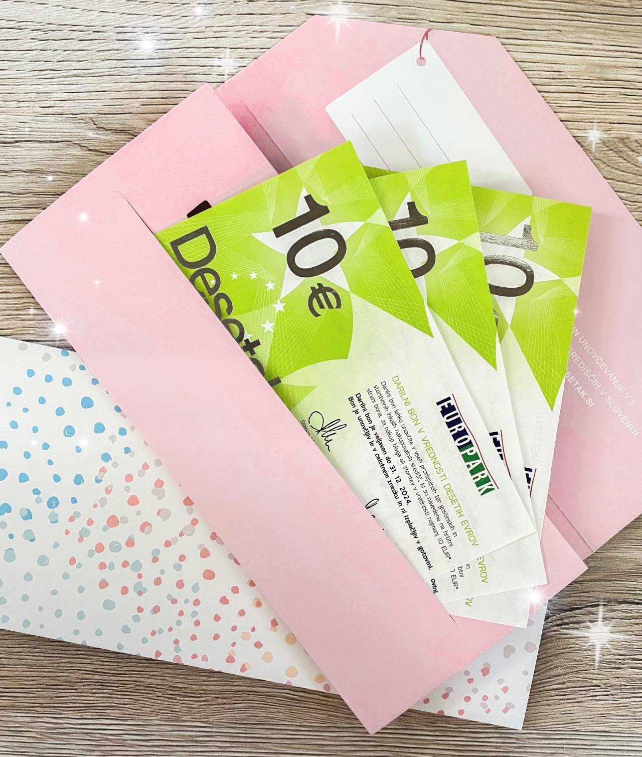 Obdarovanje z Desetaki je nekaj posebnega, a vendar tako preprosto. Ko podarite Desetak, obenem obdarovancu podarite neskončno možnosti in izbire. Desetak odpre vrata v svet brezskrbnih nakupov, kjer domišljija nima meja!