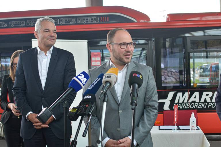 Minister za infrastrukturo Jernej Vrtovec je v družbi župana Mestne občine Maribor Saše Arsenovića in direktorja Javnega podjetja za mestni potniški promet Marprom Bernarda Majheniča spregovoril o razvojnih priložnostih javnega mestnega potniškega prometa v Mestni občini Maribor.